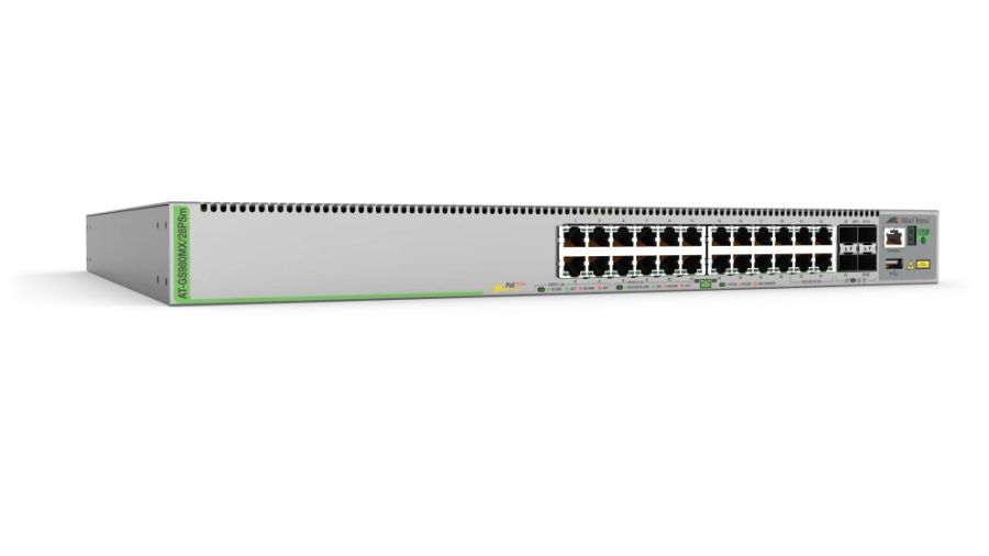 Switch Stand-Alone Allied Telesis L3 STACK SWITCH 20X10/100/1000- T POE+ 4X100M/1G/2.5G/5G-T POE+ AT-GS980MX/28PSAT-GS980MX/28PSM-50. Tipo interruttore: Gestito, Livello del commutatore: L3. Tipo di porte RJ-45: Gigabit Ethernet (10/100/1000), Quantità di porte RJ-45: 20, Quantità di moduli SFP+ installati: 4, Console port: USB. Dimensioni tavola MAC: 16000 voci, Capacità di commutazione: 160 Gbit/s. Standard di rete: IEEE 802.1AX, IEEE 802.1D, IEEE 802.1Q, IEEE 802.1p, IEEE 802.1s, IEEE 802.1v, IEEE 802.1w, IEEE.... Supporto Power over Ethernet (PoE). Montaggio rack, Fattore di forma: 1U
