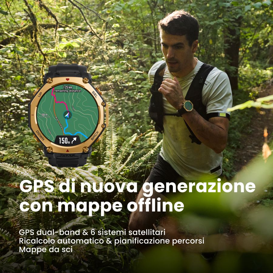 SmartWatch Amazfit TREX 3PRO- S.WATCH T-REX 3PRO 48MM GT9008266079Che tu stia spingendo i tuoi limiti su un sentiero accidentato, immergendoti sotto la superficie o allenandoti per la tua prossima grande gara, il T-Rex 3 Pro è progettato per chi si allena senza compromessi. Realizzato con materiali resistenti e di alta qualità e ricco di funzionalità avanzate, è progettato per resistere alle condizioni più difficili, offrendo al contempo un monitoraggio preciso e informazioni sulle prestazioni. Con un comfort che dura tutto il giorno e un'eccezionale durata della batteria, ti mantiene connesso ai tuoi obiettivi e in controllo di ogni momento, indipendentemente da dove ti porti la tua avventura.