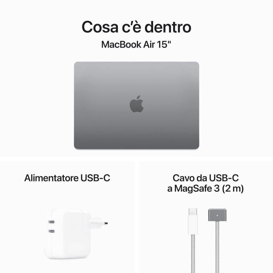 Notebook Apple MACBOOK AIR 15 M3 8GB/256GB SPGRY 8CORE 10 GPU SPACE GREY XPRMRYM3TAMacBook Air 15". Leggero. Potente. M3raviglioso.