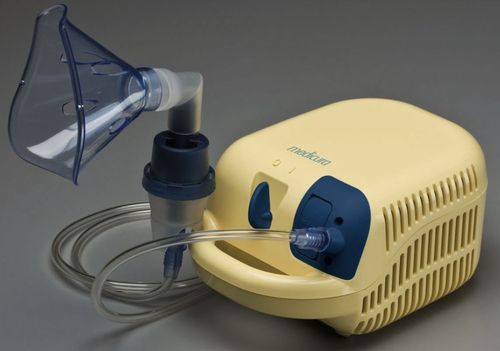 Apparecchio per aerosolterapia a pistone. Compatto per un ingombro ridotto. Comoda maniglia per il trasporto. Completamente accessoriato.
