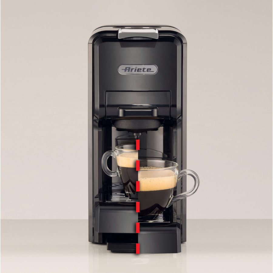 Caffettiere Ariete 1304/01 MACCH CAFFE POLV/CIALDE/CAPS NESPRESSO DOLCEGUSTO GT1302025060La macchina da caffè per capsule, cialde e polvere ti permette di preparare l?espresso con la tua modalità preferita! Le capsule offrono un?ampia varietà di scelta tra cui ginseng, orzo, decaffeinato e tante altre, fino alle bevande calde come il the; le cialde ESE rappresentano una soluzione pratica per gustare un buon caffè, preservandone l?aroma e la freschezza e con un?attenzione particolare all?ambiente; infine il caffè in polvere per gli amanti della tradizione. Con un design compatto che si adatta ad ogni cucina, ufficio oppure negozio, puoi preparare il tuo caffè ovunque e in qualsiasi momento della giornata. scegliendo tra espresso e caffè lungo. Il serbatoio da 0,7L ti permette di preparare più bevande senza necessità di frequenti ricariche. E? possibile regolare l?altezza del cassettino e utilizzare diverse tipologie di tazze: avvicinando la tazza all?erogatore otterrai una crema perfetta. Il risultato? Un aroma ricco e intenso che valorizza ogni tazzina, per un?esperienza di caffè autentica