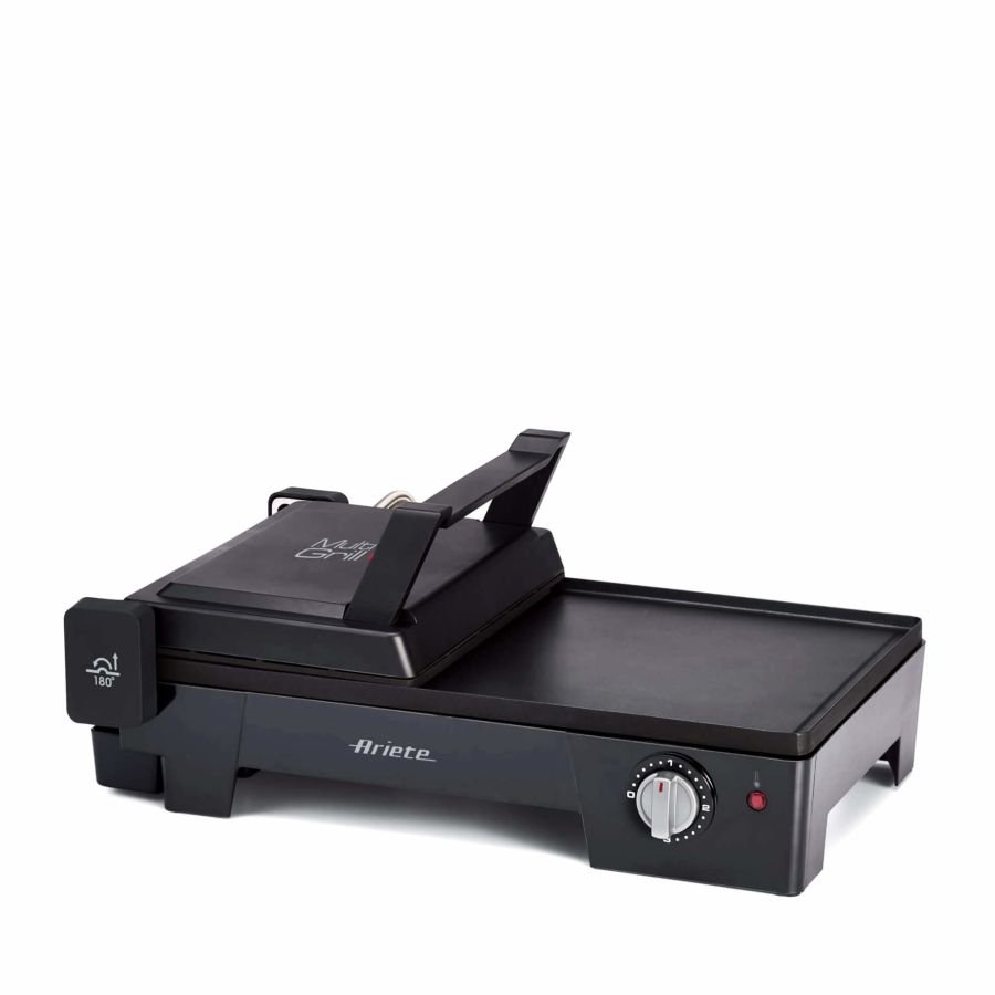 Griglia Elettrica. Ariete 1916 MULTIGRILL 3IN1 2400W ARI TRN639658Con Multi Grill 3 in 1 i tuoi barbecue a casa saranno un vero successo, perché potrai soddisfare i gusti di tutti gli invitati e grigliare contemporaneamente tante pietanze differenti, come hamburger, toast, carne, verdure e uova. Con 3 superfici di cottura in un'unica griglia elettrica, le tue grigliate avranno davvero tutto un altro sapore. La griglia elettrica è infatti un barbecue versatile e multifunzione, che si trasforma facilmente da griglia da tavolo con coperchio a contatto, a barbecue con pistra liscia e rigata. In questo modo potrai contemporaneamente tostare o scaldare toast, panini e hamburger e piastrare carne, verdure o pesce. Il coperchio inoltre ruota a 180°, aumentando la superficie della griglia in in una semplice mossa! Che sia ben cotta, o al sangue, grazie al termostato regolabile potrai ottenere sempre la cottura della carne proprio come piace a te e la spia di pronto temperatura ti indicherà il momento perfetto per iniziare a grigliare. Il pratico vassoio raccogli grassi è estraibile e lavabile e le piastre antiaderenti sono facili da pulire con una sola passata di spugna, in questo modo avrai sempre la griglia pronta per la prossima grigliata in compagnia!