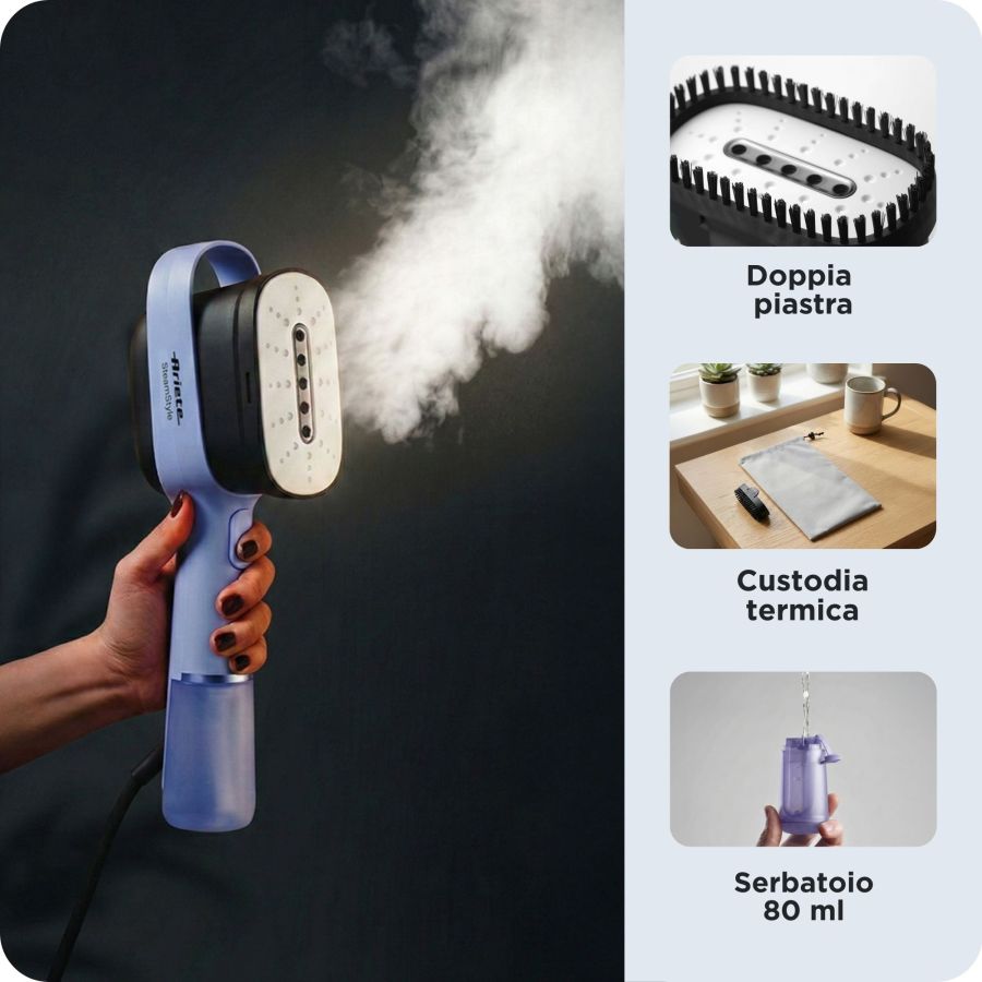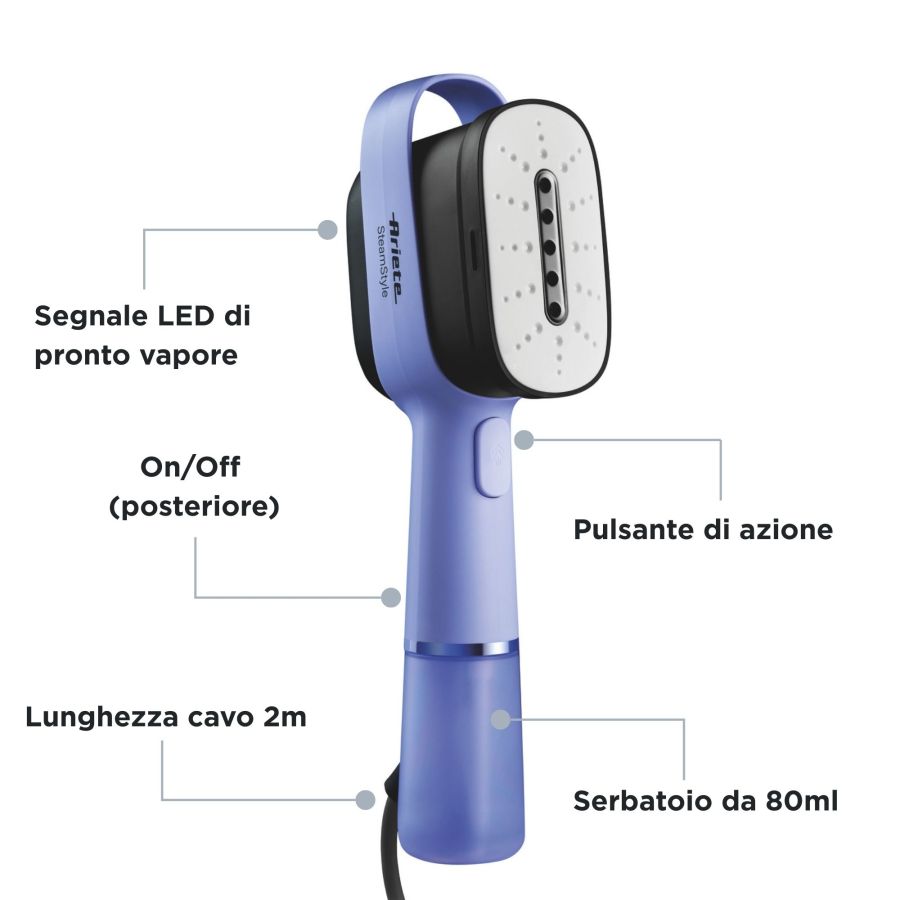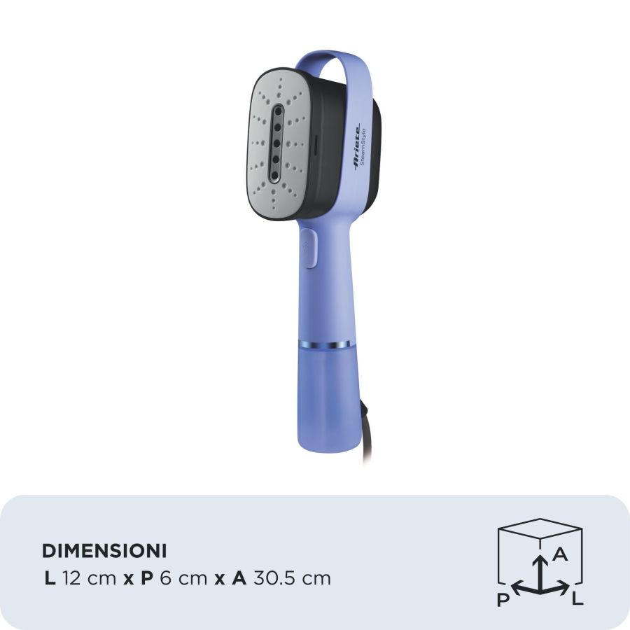 a Vapore Ariete 4301/00 00S430100AR0-19Dimentica l'ingombro dell'asse da stiro e accogli la velocità e la praticità di Steam Style, il ferro da stiro verticale, l'alleato perfetto per in ogni situazione.Con una potenza di 1200W, Steam Style è pronto all'uso in soli 30 secondi, regalandoti un getto continuo di vapore fino a 20g/min per un'eliminazione delle pieghe facile e veloce. Che tu debba fare un ritocco dell'ultimo minuto prima di uscire, o eliminare le stropicciature create da un lungo viaggio, Steam Style è la soluzione pratica e rapida che stavi cercando, adatta a diversi tipi di tessuti.Grazie al suo design ultra-slim (12x6x30.5cm), si infila ovunque: è perfetto da riporre nel cassetto di casa o da portare con te nel tuo trolley da viaggio. E per adattarsi al tuo stile, Steam Style è disponibile negli eleganti colori Mint, Coral e Violet.Grazie al potente vapore Steam Style non è solo un ferro da stiro verticale. È un mini-igienizzatore! Usalo per dare una refreshata super naturale (senza uso di detergenti chimici) ai tessuti: cuscini, materassi o i tuoi peluche preferiti. I suoi accessori sono pensati anche per chi vive in movimento: include una pratica spazzola rimuovi pelucchi (removibile con un click, adatta ai tessuti più spessi) e una sacca resistente al calore per riporlo subito dopo l'uso, garantendo massima praticità sia a casa che in viaggio.Con un serbatoio da 80ml, funzione anti-goccia e autospegnimento, Steam Style garantisce efficienza, sicurezza e ti permette di scegliere il tuo look in totale libertà.