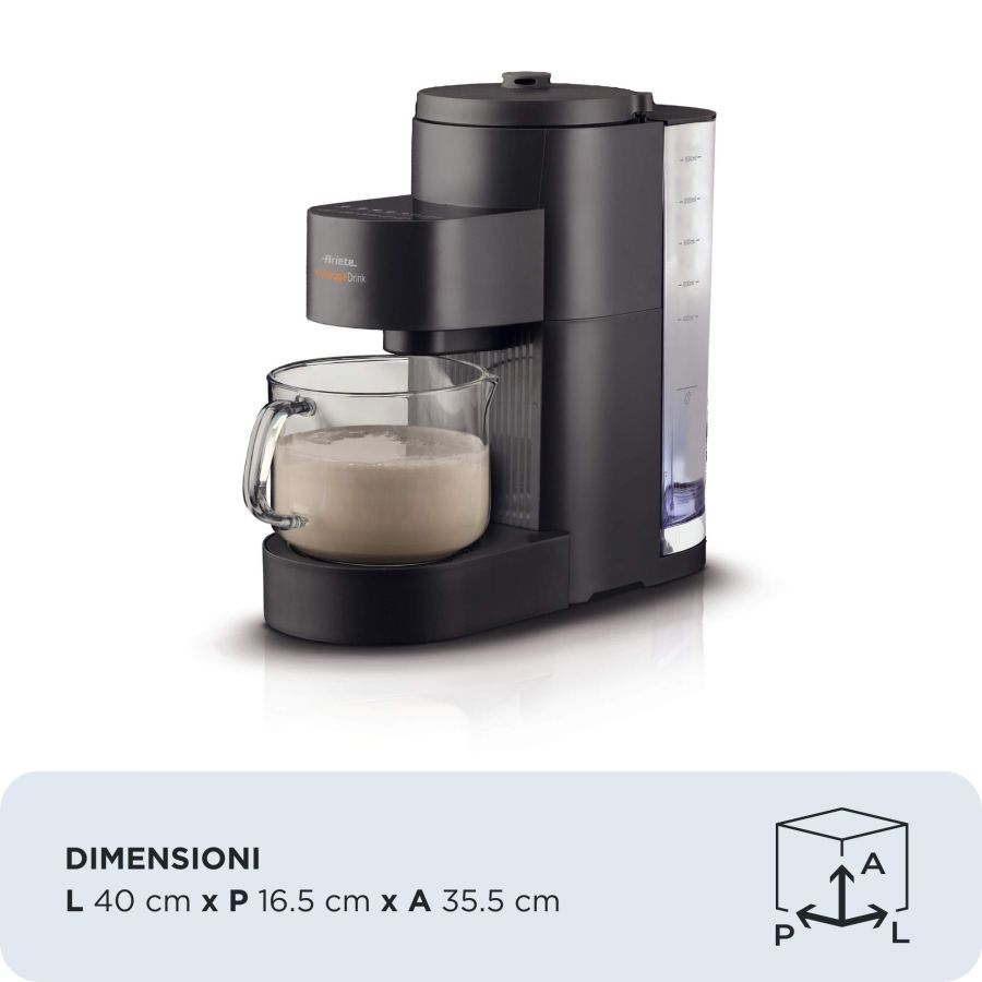 Centrifughe Ariete 650/00 0C065000AR0-86Desideri un?alternativa al latte? Il dilemma è finito! Con My Veggie Drink, la macchina per preparare bevande vegetali, puoi dire addio alle scelte difficili e iniziare a creare le tue bevande preferite direttamente a casa.. ogni giorno!Scegli i tuoi ingredienti preferiti (fiocchi d?avena, riso, soia, nocciole, mandorle) inserisci gli ingredienti nel recipiente per la lavorazione dotato di 4 potenti lame in acciaio inox e rivestimento in ceramica antiaderente. Dal display touch scegli tra i 6 programmi a disposizione quello che preferisci e My Veggie Drink inizierà la preparazione della tua bevanda e sarà velocissima: in appena 15 minuti avrai il tuo drink vegetale pronto da gustare! Ogni giorno puoi provare una varietà nuova: che sia bevanda di avena, riso, soia, mandorla, smoothies golosi e gourmet, succhi di frutta e tanto altro, con My Veggie Drink la tua fantasia e creatività non avranno limiti!I tuoi drink vegetali saranno preparati con ingredienti naturali e con la sola aggiunta di acqua tramite il serbatoio da 1,5 L rimovibile. Una volta preparata la tua bevanda vegetale, My Veggie Drink inizierà il processo di autopulizia e auto asciugatura del recipiente di lavorazione affinchè la macchina sia sempre pronta all?uso senza alcuno sforzo o perdita di tempo