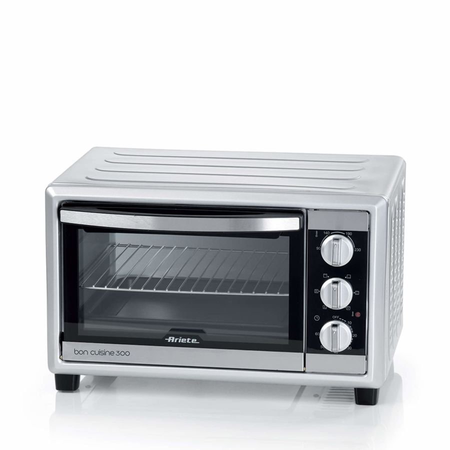 Fornetti e Scaldavivande Ariete 985 FORNO EL 30LT. BON CUISINE GT1210025017Bon Cuisine 300 è il forno elettrico ventilato da 30 litri con funzione statica e ventilata perfetto per la preparazione di piatti appetitosi e ricchi di sapore fatti con le tue mani e la tua fantasia. Divertiti a provare tante ricette cotte in forno per deliziare i palati di tutta la famiglia e mettere in tavola tanto gusto e profumo! Con i suoi 1500 Watt di potenza, una capacità di 30 litri e 6 modalità di cottura, Bon Cuisine 300 ti permetterà di preparare arrosti di carne, pesce, verdure, pasta al forno, pizze, torte, biscotti con tutto il gusto e la bontà delle cose genuine fatte in casa. La funzione ventilazione consente di cuocere i cibi in maniera combinata, mentre il doppio vetro ad elevata resistenza mantiene costante la temperatura e contribuisce a ottimizzare i tempi di cottura. Completo di griglia in acciaio inox, leccarda, vassoio raccogli briciole e manico con pinza per estrarre gli accessori è un prodotto completo e irrinunciabile per la tua cucina. Il timer è impostabile fino a 60 minuti e la temperatura fino a 230°C. Con Bon Cuisine 300 ogni piatto ha più sapore.
