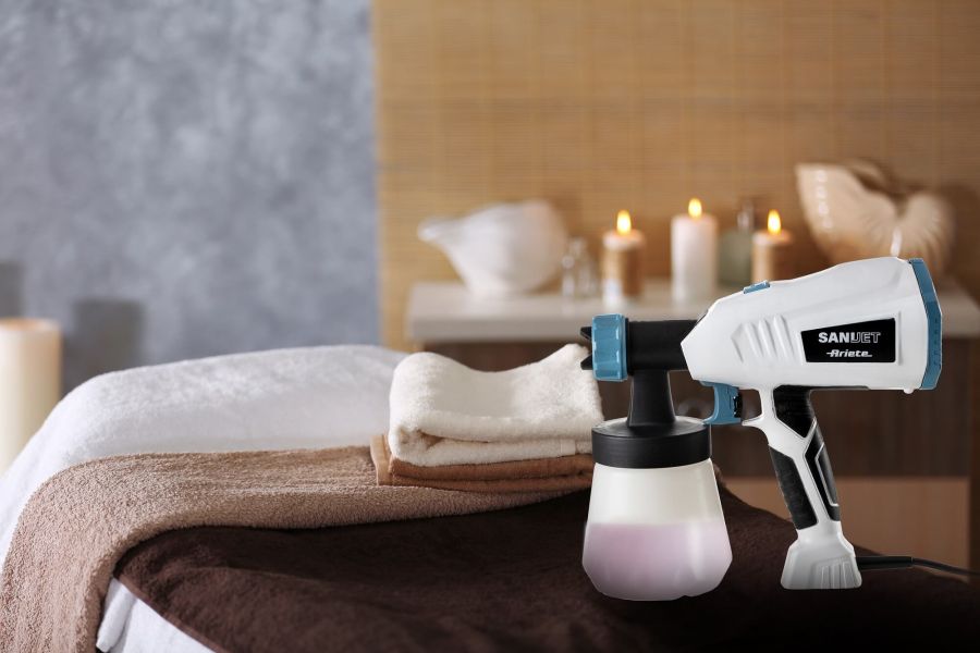 nebulizzatore igenizzante. Ariete SANI JET 4126-ARI 4126-ARISani-Jet è il primo nebulizzatore igienizzante compatto, maneggevole e facile da utilizzare, specifico per la pulizia di qualsiasi superficie o ambiente, grazie all?azione di Sani-Jet Clean la soluzione igienizzante. Utilizzare l'igienizzatore Sani-Jet è semplicissimo: è sufficiente sciogliere in acqua di rubinetto una bustina di Sani-Jet Clean fornita insieme al prodotto. Sani-Jet Clean in acqua genera cloro attivo 0,1%, garantendo una igienizzazione perfetta per questo periodo di pandemia come raccomandato dal Ministero della Salute . A questo punto è possibile nebulizzare la soluzione direttamente sulla superficie che desideri igienizzare, direzionando l?apposito ugello e scegliendo l?intensità del getto.