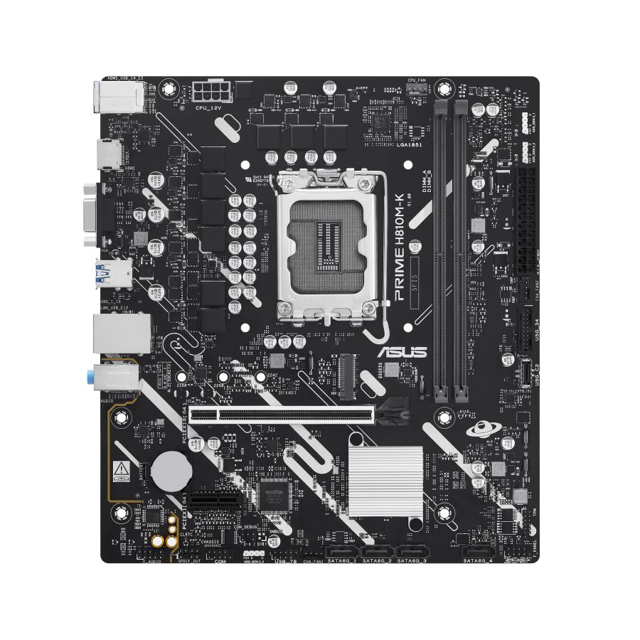 Desktop Motherboard Asus PRIME H810M-K 90MB1N10-M0EAY0 90MB1N10-M0EAY0PRIME H810M-K. Produttore processore: Intel, Presa per processore: LGA 1851 (Socket V1), Processori compatibili: Intel Core Ultra (Series 2). Tipi di memoria supportati: DDR5-SDRAM, RAM massima supportata: 128 GB, tipo di slot di memoria: DIMM. Interfacce dell'unità di archiviazione supportate: M.2, SATA III, Tipi di unità di archiviazione supportate: HDD & SSD. Tipo di interfaccia Ethernet: Gigabit Ethernet. Componente per: PC, Fattore di forma scheda madre: micro ATX, Famiglia di chipset per scheda madre: Intel