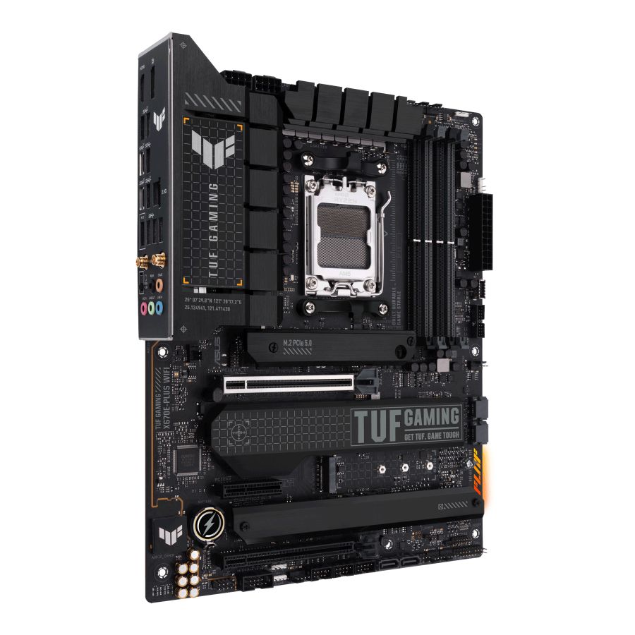 Desktop Motherboard Asus TUF GAMING X670E-PLUS WIFI 90MB1BK0-M0EAY0TUF GAMING X670E-PLUS WIFI. Produttore processore: AMD, Presa per processore: Socket AM5, Processori compatibili: AMD Ryzen 7000 Series. Tipi di memoria supportati: DDR5-SDRAM, RAM massima supportata: 192 GB, tipo di slot di memoria: DIMM. Interfacce dell'unità di archiviazione supportate: M.2, SATA III, Tipi di unità di archiviazione supportate: HDD & SSD, Livelli RAID: 0, 1, 10. Risoluzione massima: 7680 x 4320 Pixel. Tipo di interfaccia Ethernet: 2.5 Gigabit Ethernet, Wi-Fi standard: Wi-Fi 6E (802.11ax), Standard Wi-Fi: 802.11a, 802.11b, 802.11g, Wi-Fi 4 (802.11n), Wi-Fi 5 (802.11ac), Wi-Fi 6 (802.11ax), Wi-Fi 6E...