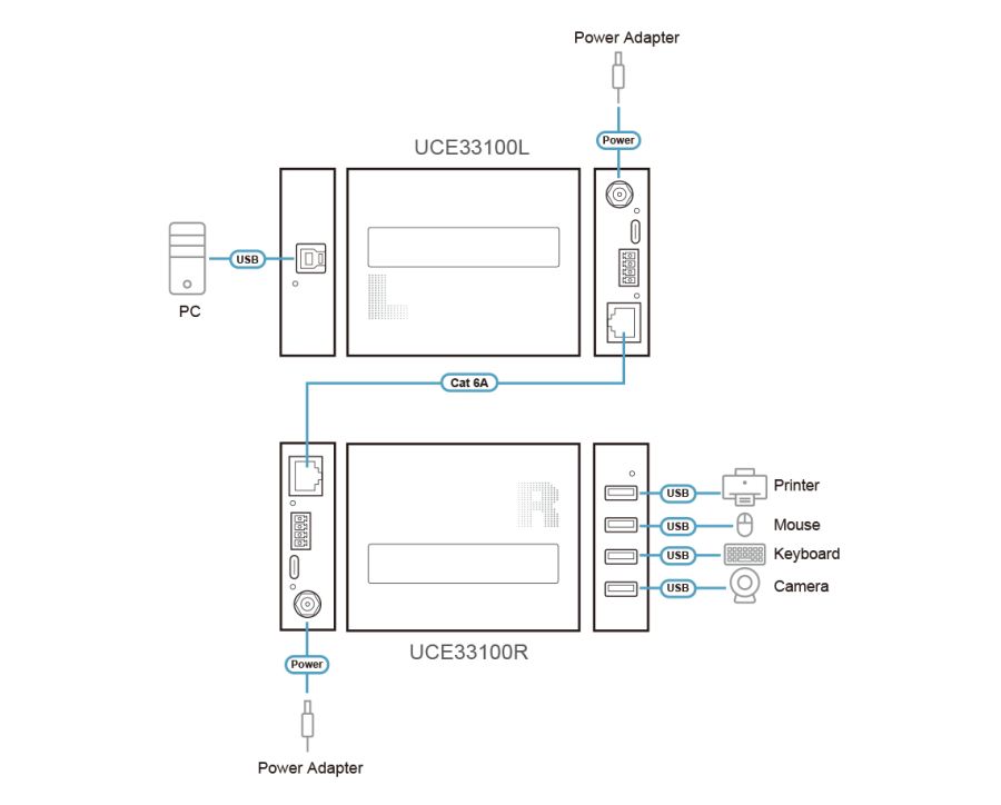EXTENDER VIDEO ATEN 4-PORT USB 3.0 GEN 1 CAT 6A UCE33100-AT-B UCE33100-AT-BUCE33100. Tipo: Ricevitore e trasmettitore di rete, Distanza massima di trasferimento: 100 m, Tipi di cavi supportati: Cat6a. Colore del prodotto: Nero, Materiale della scocca: Metallo. Consumi: 2,64 W. Larghezza: 85 mm, Profondità: 107,5 mm, Altezza: 25,5 mm