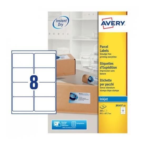 Etichette Indirizzi / Pacchi Avery ETICHETTE PER INDIRIZZI BUSTE - 200 PACCHI 99 1X67 7 SINGOLO J8165-25 J8165-25Etichette per indirizzi - per stampanti Inkjet - 99,1 x 67,7 mm