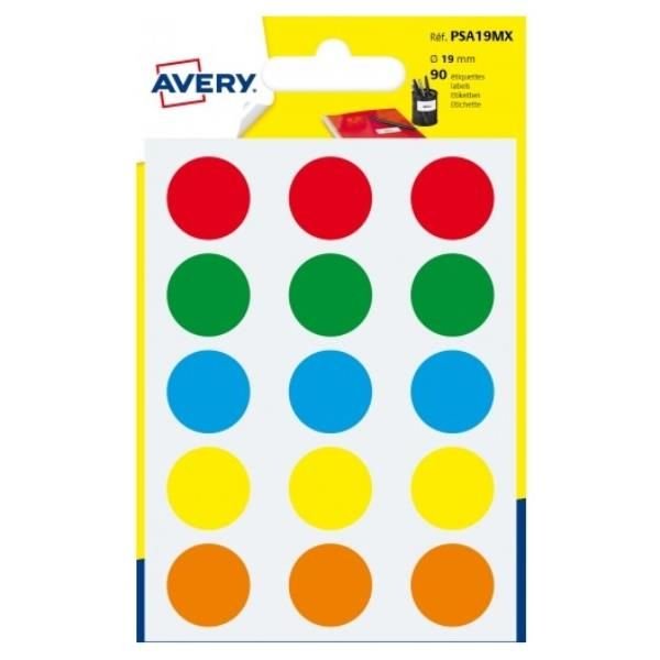 Etichette Indirizzi / Pacchi Avery ETICHETTE ROTONDE COLORATE IN BUSTINA - Ø 19 mm CF90BOLLINI COL. DIM 19MM MIX PS PSA19MXETICHETTE ROTONDE COLORATE IN BUSTINA - Ø 19 mm