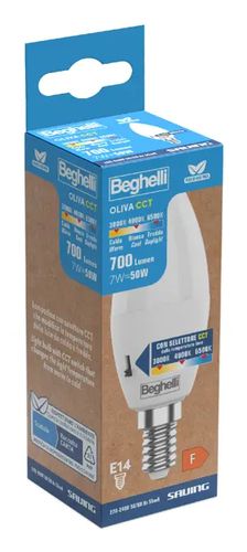 BEGHELLI LAMP. LED OLIVA 7W E14 TRICOLORLampada Saving Opale 700lm, 7W=60W, 3K/4K/6K