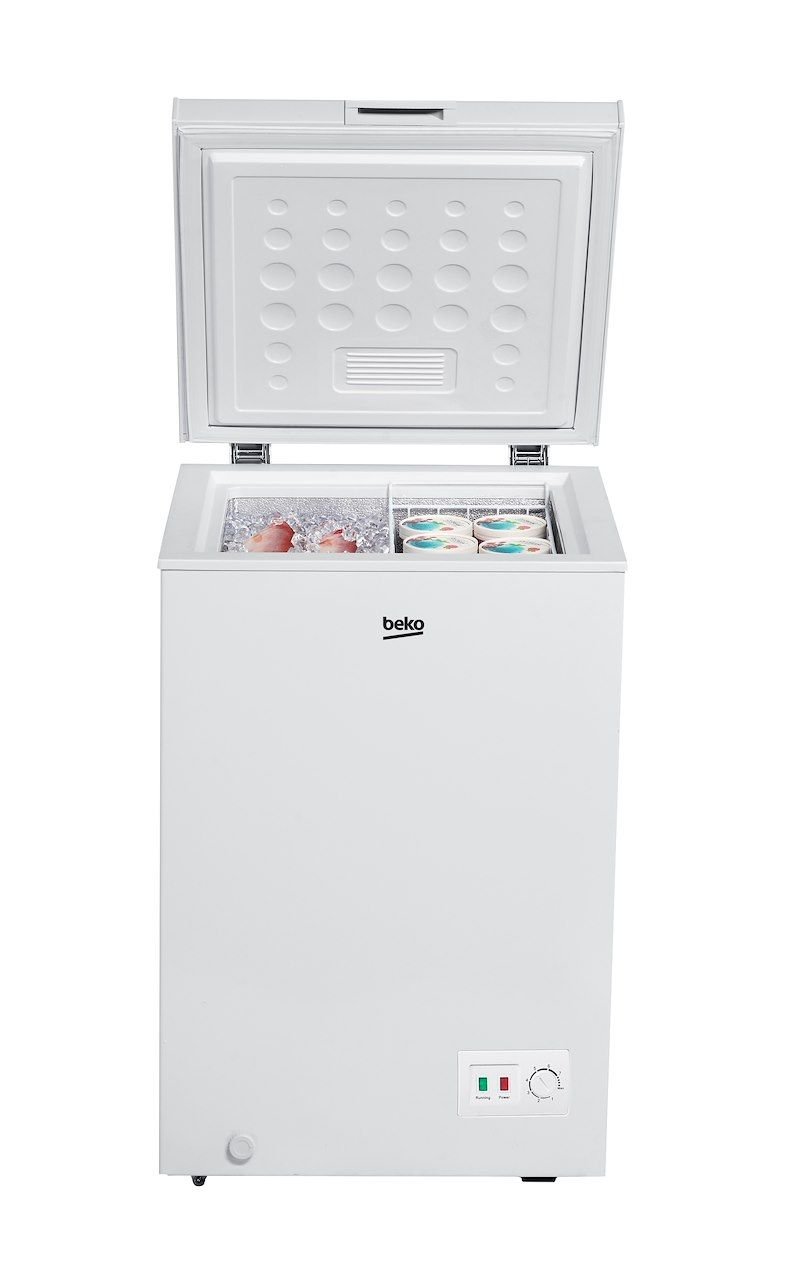 Orizzontale Beko 8996603200 CONGELATORE A POZZETTO 98LT E BIANCO CF100EWN 8996603200CF100EWN: Congelatore Orizzontale, Statico, 98 L, 54.5 cm. Capacità netta congelatore: 98 L, Classe climatica: SN-ST, Capacità di congelamento: 6 kg/24h, Autonomia senza energia elettrica: 13,5 h, Emissione acustica: 40 dB, Punteggio: 4*. Classe efficienza energetica: E, Consumo energetico annuo: 211,09 kWh. Colore del prodotto: Bianco