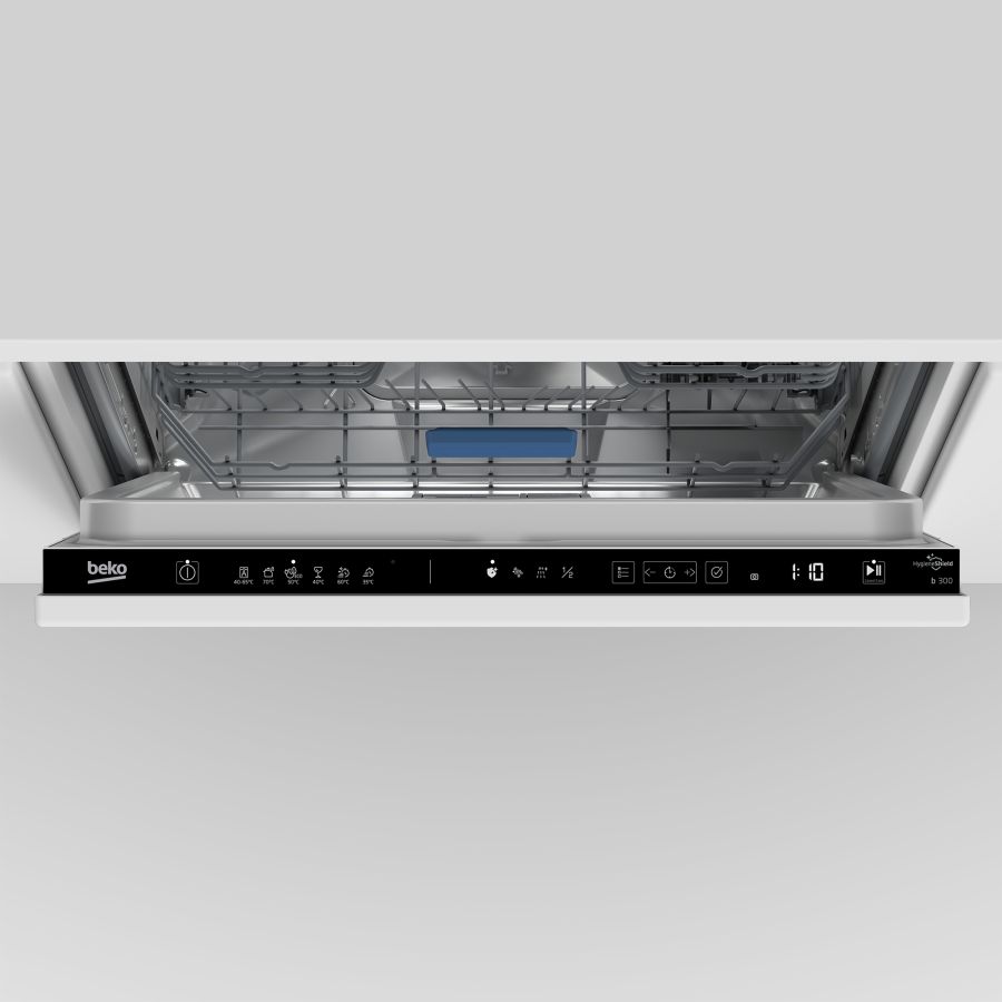 Scomparsa Beko BDIN37530 7614397377-30BDIN37530: Lavastoviglie a Scomparsa Totale Classe D, 60 cm, 15 Coperti. Posizionamento dell'apparecchio: A scomparsa totale, Dimensione: Dimensione massima (60 cm), Colore pannello di controllo: Nero. Numero di coperti: 15 coperti, Classe emissione rumore: B, Emissione acustica: 44 dB. Classe efficienza energetica: D, Consumo di acqua per ciclo: 9,9 L, Consumo energetico per 100 cicli: 86 kWh. Larghezza: 598 mm, Profondità: 550 mm, Altezza: 818 mm. Tecnologie (lavaggio stoviglie): HygieneIntense, SteamGloss®