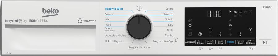 Tecnologie Beko (cura dei vestiti) Aquawave, OptiSense, SteamCure, Super Short