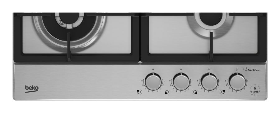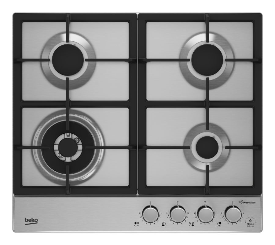 a Gas Beko Piano cottura gas Beko 7751688318 PRACTICLEAN Hiaw64225Sxe Inox 16BB0875988Cottura più veloce ed efficiente con bruciatori dal design innovativo