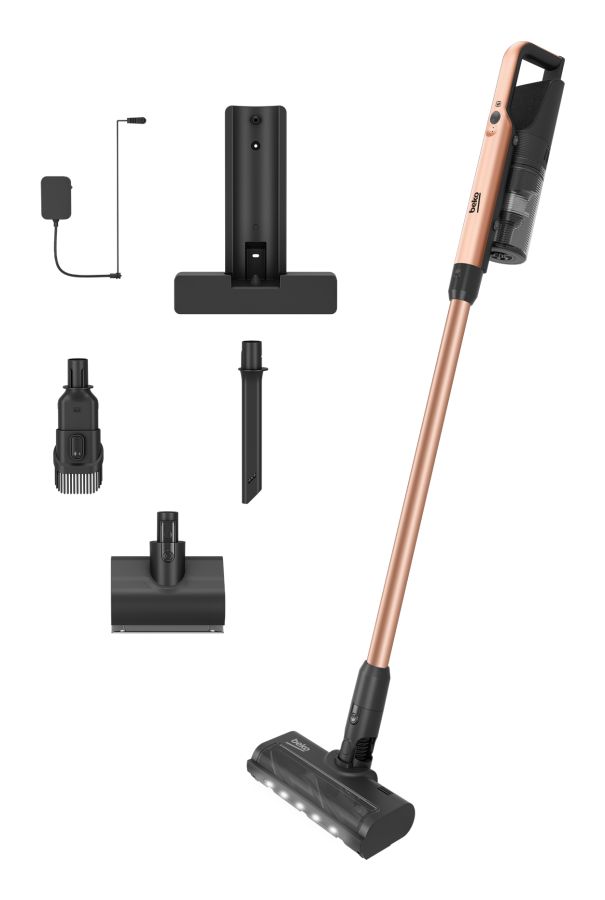 SCOPA ELETTRICA RICARICABILE Beko VRT66421VC 8917843200-17VRT 66421 VC: Aspirapolvere Senza Fili IZI, 250 Watt, 21.6 Volt, 40 min Autonomia, Mini turbo spazzola. Tipo di prodotto: Aspirapolvere elettrica, Tipo di contenitore della polvere: Senza sacchetto, Colore del prodotto: Nero, Bronzo. Tipo di pulizia: Secco, Emissione acustica: 80 dB. Indicatori LED: Livello della batteria. Alimentazione: Batteria, Massima potenza in entrata: 250 W, Tensione di ingresso AC: 100 - 240 V. Larghezza imballo: 770 mm, Profondità imballo: 140 mm, Altezza imballo: 140 mm