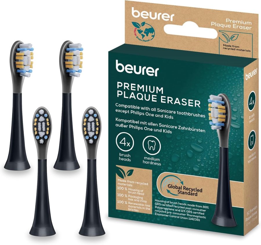 3 Testine Premium Plaque Eraser: Vibrazione ottimizzata delle setole grazie agli spazi liberi tra i fasci di setole - Rivestimento protettivo in gomma sulla testina - setole indicatrici allungate - durezza media delle setole - Green Planet: confezione in