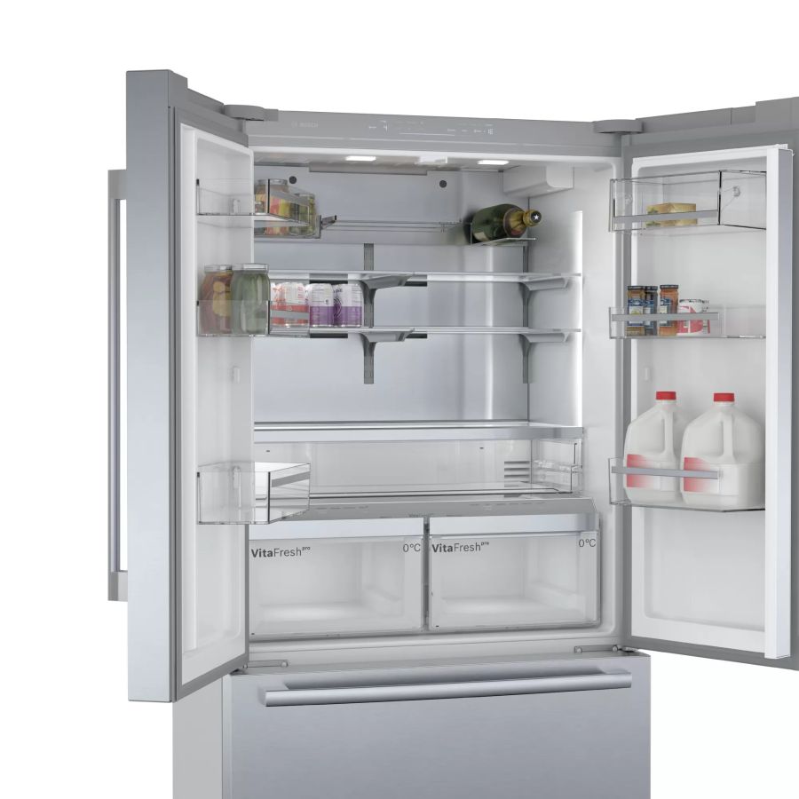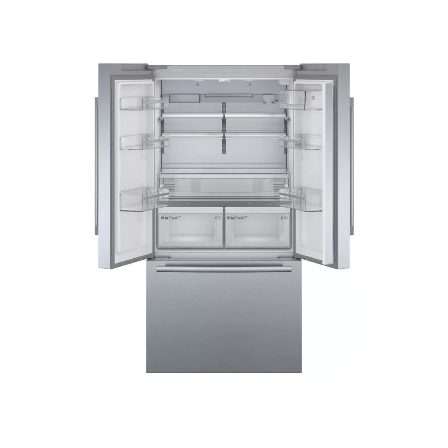 Doppia Porta Bosch Frigorifero Bosch SERIE 8 KFF96PIEP Inox 29BB0976258KFF96PIEP. Posizionamento dell'apparecchio: Libera installazione, Design del prodotto: Porta francese, Colore del prodotto: Acciaio inox. Capacità netta totale: 573 L, Classe climatica: SN-T, Classe emissione rumore: C. Capacità netta frigorifero: 402 L, Tipo di lampada: LED. Capacità netta congelatore: 171 L, Posizione del congelatore: Posto in basso, Capacità di congelamento: 15 kg/24h. Lunghezza cavo: 2,4 m