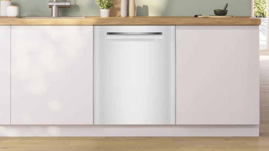 Lavastoviglie Bosch Serie 4 SMP4ECW72S, da incasso sottopiano, colore bianco, 14 coperti, tecnologia EcoSilence Drive, funzioni speciali Riconoscimento detersivo / Remote Start / Asciugatura Extra.
