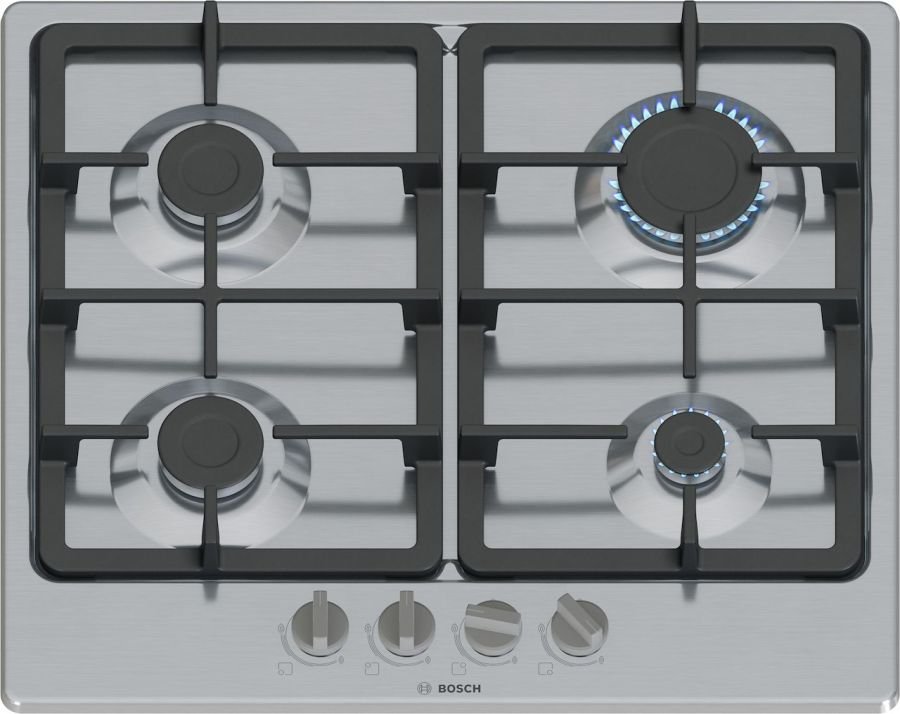 Comandi Frontali Bosch PGP6B5K90 PGP6B5K90Piano cottura a gas con griglie in ghisa lavabili in lavastoviglie.