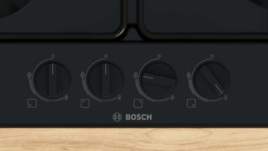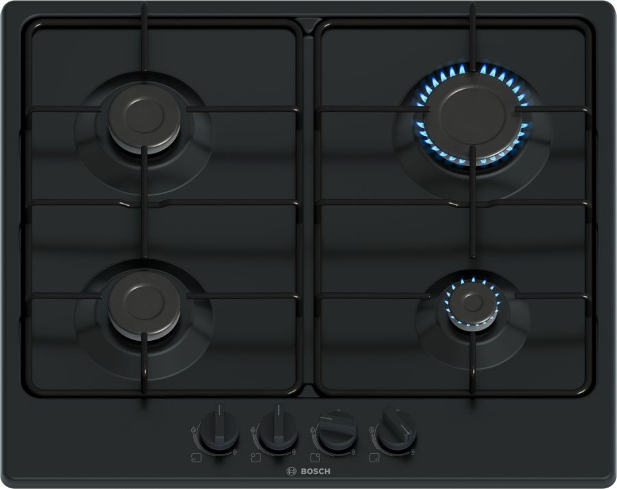 BOSCH PIANO COTT.PGP6B6K80 NERO 60CMGriglia Smaltata,Ugelli per Gas Liquido,Manopole F