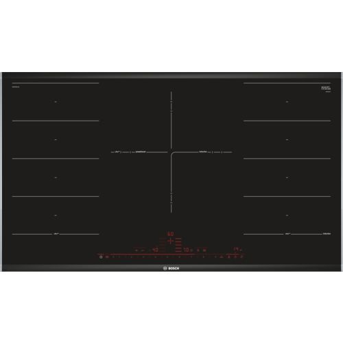 Elettrici Bosch Piano cottura induzione Bosch SERIE 8 PXV975DC1E FlexInduction Black 29BB0666139Serie 8 PXV975DC1E. Colore del prodotto: Nero, Posizionamento dell'apparecchio: Da incasso, Dimensione della larghezza del piano cottura: 90 cm. Tipo di controllo: Touch, Posizione di controllo: Frontale, Tipo di display: LED. Potenza aggregata (elettrica): 11100 W. Larghezza: 916 mm, Profondità: 527 mm, Altezza: 51 mm