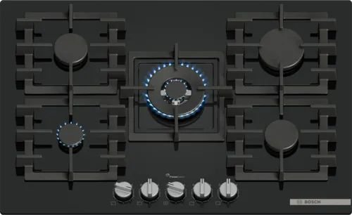 a Gas Bosch Piano cottura PPQ7A6I40 PPQ7A6I40Piano cottura a gas con controllo preciso della fiamma Flame Select e facile pulizia grazie alle manopole magnetiche removibili e alle griglie in ghisa lavabili in lavastoviglie.