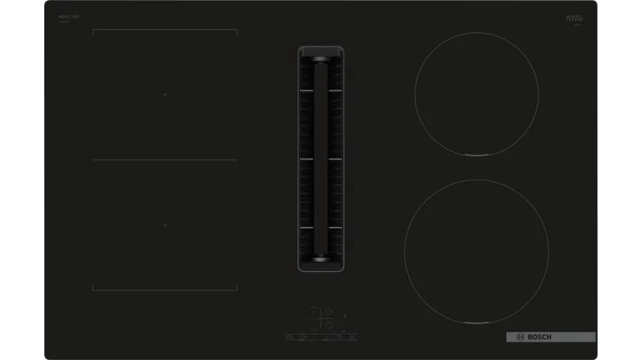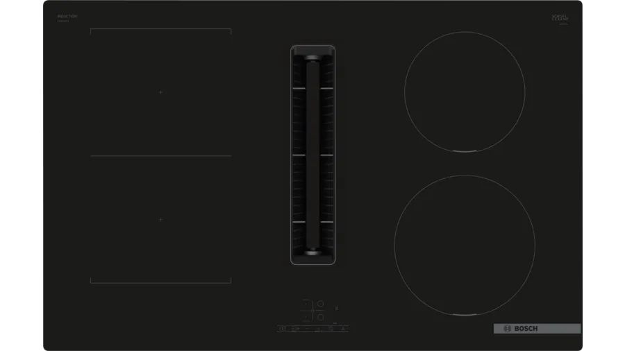 Elettrici Bosch PVS811B16E PVS811B16E-93Serie 4 PVS811B16E. Colore del prodotto: Nero, Posizionamento dell'apparecchio: Da incasso, Dimensione della larghezza del piano cottura: 80 cm. Tipo di controllo: Touch, Posizione di controllo: Front / Top front, Tipo di display: LED. Potenza massima di estrazione: 500 m³/h, Emissione acustica: 69 dB, Scala di efficienza energetica: Da A+++ a D. Potenza aggregata (elettrica): 7400 W, Tensione di ingresso AC: 220 - 240 V, Consumo energetico: 178,3 Wattora per chilogrammo. Larghezza: 802 mm, Profondità: 522 mm, Altezza: 223 mm