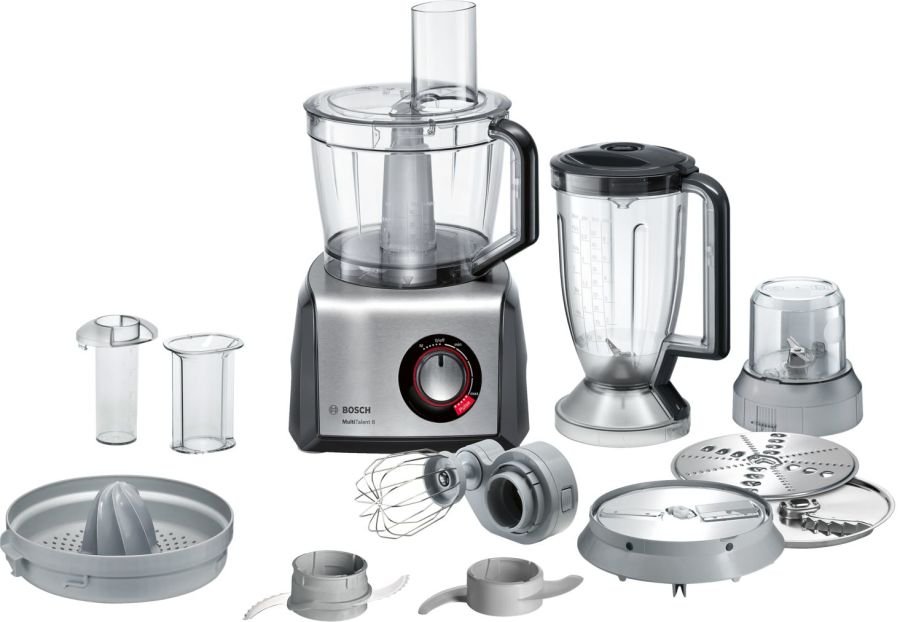 Robot da cucina. Bosch Robot cucina Bosch MULTITALENT 8 Mc812M844 Inox e Black ECO134715MC812M844 Food processor MultiTalent 8 1250 W Nero. Capacità ciotola: 3,9 L, Colore del prodotto: Nero, Acciaio inox, Nome del colore: Nero. Materiale ciotola: Plastica, Materiale coltelli: Acciaio inox. Potenza: 1250 W, Tensione di ingresso AC: 220 - 240 V, Frequenza di ingresso AC: 50 - 60 Hz. Larghezza: 250 mm, Profondità: 300 mm, Altezza: 430 mm. Contenuto della confezione: 1 x lid, 1 x plastic kneading hook, 1 x plastic mixing bowl, 1 x plastic blender attachment, 1 x...