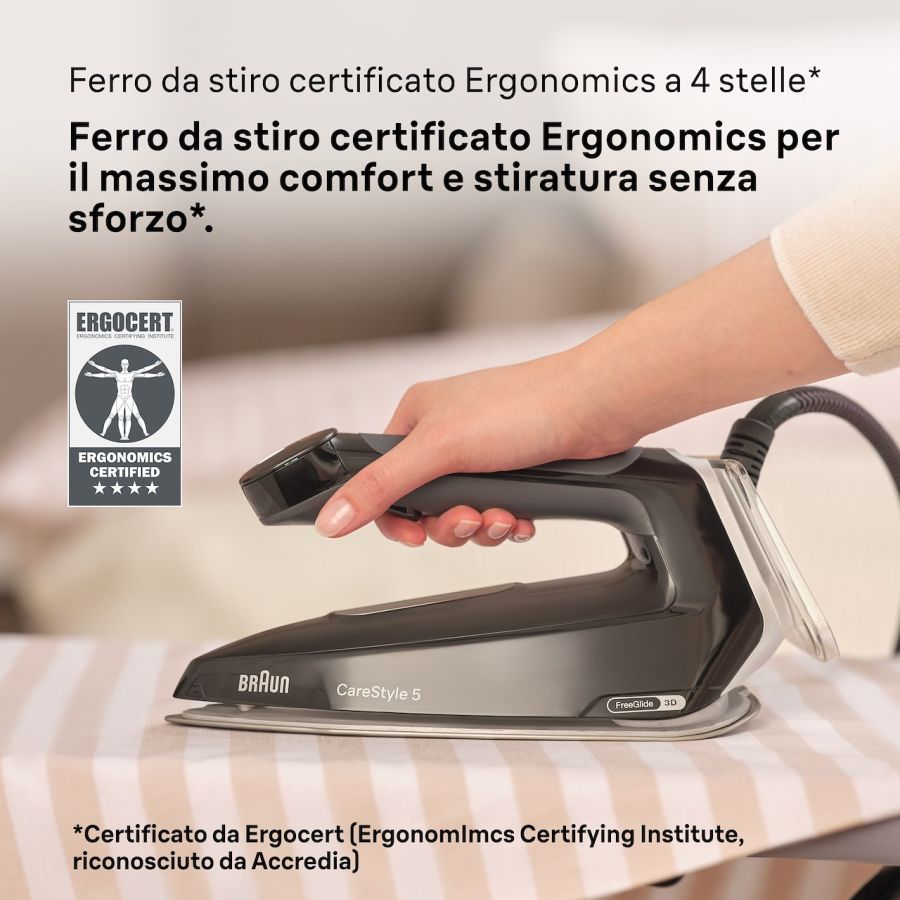 con Caldaia Braun Braun 0128809000 ECO156429CareStyle 5 IS 5249. Potenza ferro: 2400 W, Emissione concentrata vapore: 510 g/min, Materiale piastra: EloxalPlus soleplate. Lunghezza cavo: 1,8 m