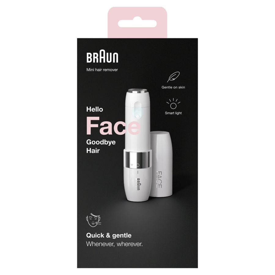 Depilatori Braun Depilatore Braun FS1000 FACE Mini hair remover White G00_FS1000Un depilatore per il viso dal design elegante, di piccole dimensioni, che offre risultati rapidi e delicati. Il mini depilatore donna Braun rimuove i peli superflui, lasciando il viso liscio, omogeneo e privo di peluria. Depilazione donna rapida e delicata: dove vuoi, quando vuoi. La confezione include: 1 mini rasoio elettrico donna 1 cappuccio bianco 1 spazzolina di pulizia 1 batteria AA.