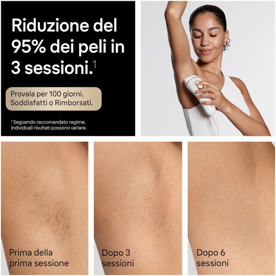 Accessori in dotazione Contenuto della confezione: Epilatore Luce Pulsata Braun con testina Smart Flex, 3 testine, custodia morbida, rasoio Gillette Venus (il modello può variare)