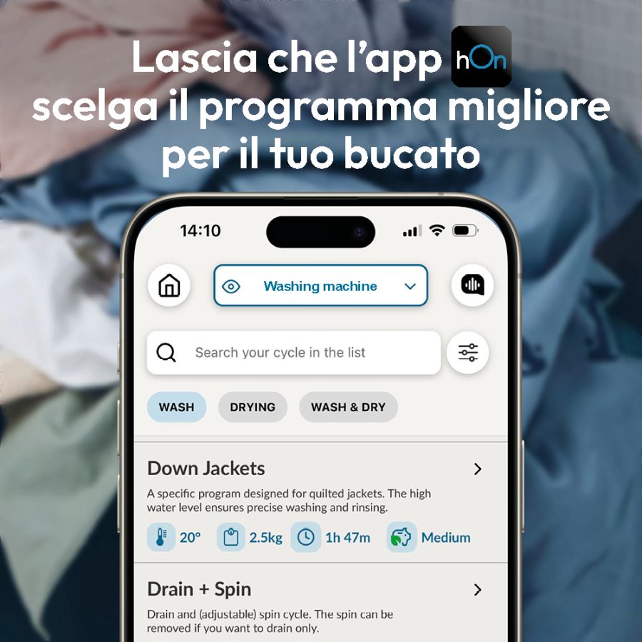 Programmi di lavaggio Cotone, Cura quotidiana, Delicati/Seta, Eco 40-60°C, A mano/Lana, Hygiene+, Jeans/denim, Rapido, Risciacquo, AI intelligente, Centrifuga/scarico, Stain care, Sintetico, Lana