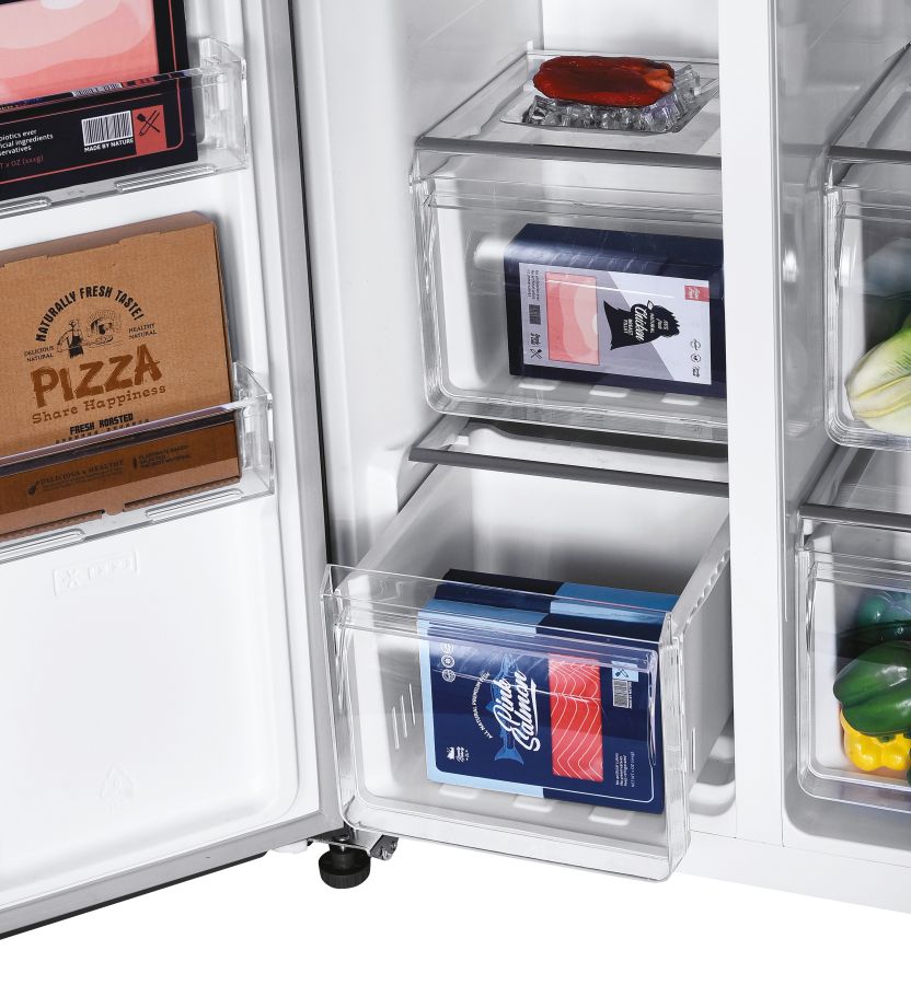 Il frigorifero Side by Side offre la massima capacità di conservazione del cibo e si adatta a ogni tipo di cucina.