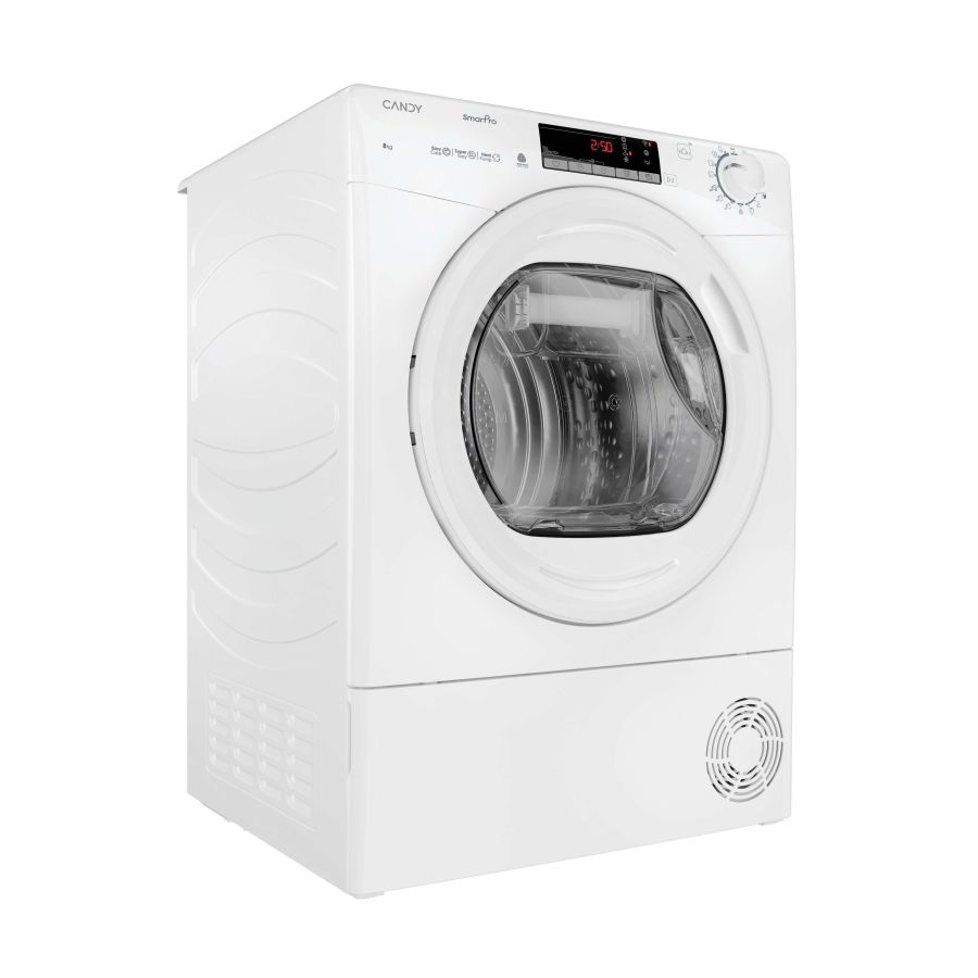 Asciugatrici Candy SMART PRO CRO EH8N2TE-S 31103020 31103020CRO EH8N2TE-S. Posizionamento dell'apparecchio: Libera installazione, Tipo di carica: Caricamento frontale, Sistema di asciugatura: Pompa di calore. Capacità cestello: 8 kg, Classe di efficienza della condensazione: B, Programmi di asciugatura: A colori, Quotidiano, Eco, Jeans/denim, Rapido, Refresh, Shirts, Sport, Vestiti bianchi, Lana. Partenza ritardata: 24 h, Applicazioni per il controllo supportate: hOn, Funzioni delle app: Diagnostica remota, Monitoraggio remoto, Avvio a distanza. Classe efficienza energetica: D, Consumo energetico per 100 cicli: 119 kWh, Fonte di calore: Elettrico. Profondità: 604 mm, Larghezza: 596 mm, Altezza: 850 mm