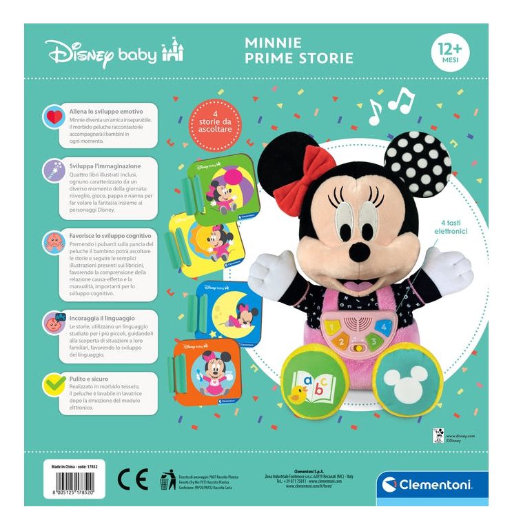 Giocattolo. Clementoni BABY MINNIE PRIME STORIE 17852 17852Baby Minnie diventa un'amica inseparabile. Il morbido peluche raccontastorie accompagnerà il bambino in ogni momento.
