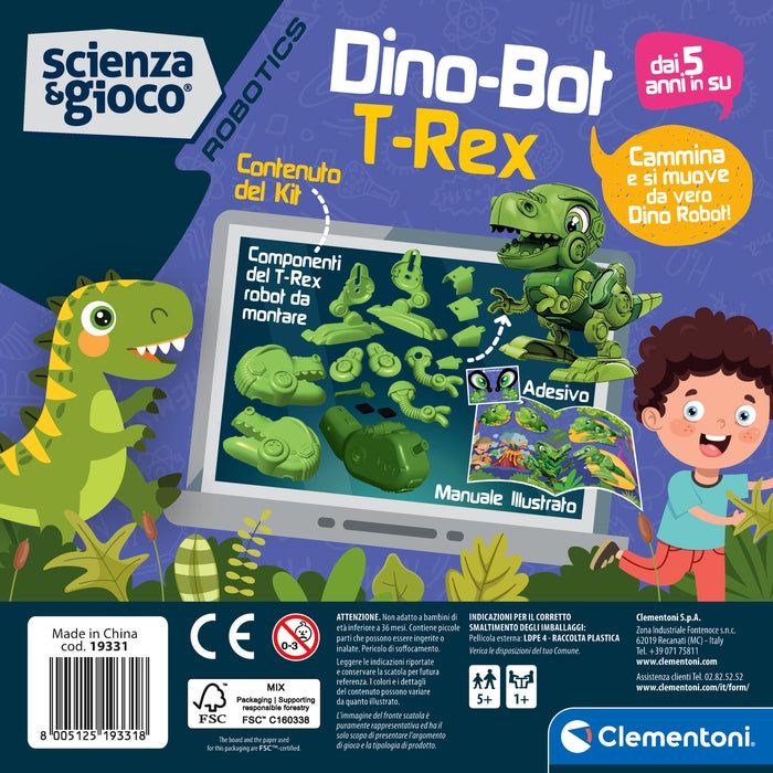 Costruzioni Clementoni BOT T-REX DINOBOT T REX 19331 19331I nuovi Dino sono pensati per sviluppare manualità e pensiero logico, avvicinando il bambino di età prescolare alle materie STEM. Questo modello riproduce in maniera colorata e divertente l'icononico T-rex. Ogni Dino è facile da assemblare grazie agli strumenti forniti nel kit. Il gioco ha speciali meccanismi che consentono movimenti unici per ciascun modello. Il design è proprietario, Made in Italy e personalizzato per ogni costruzione.