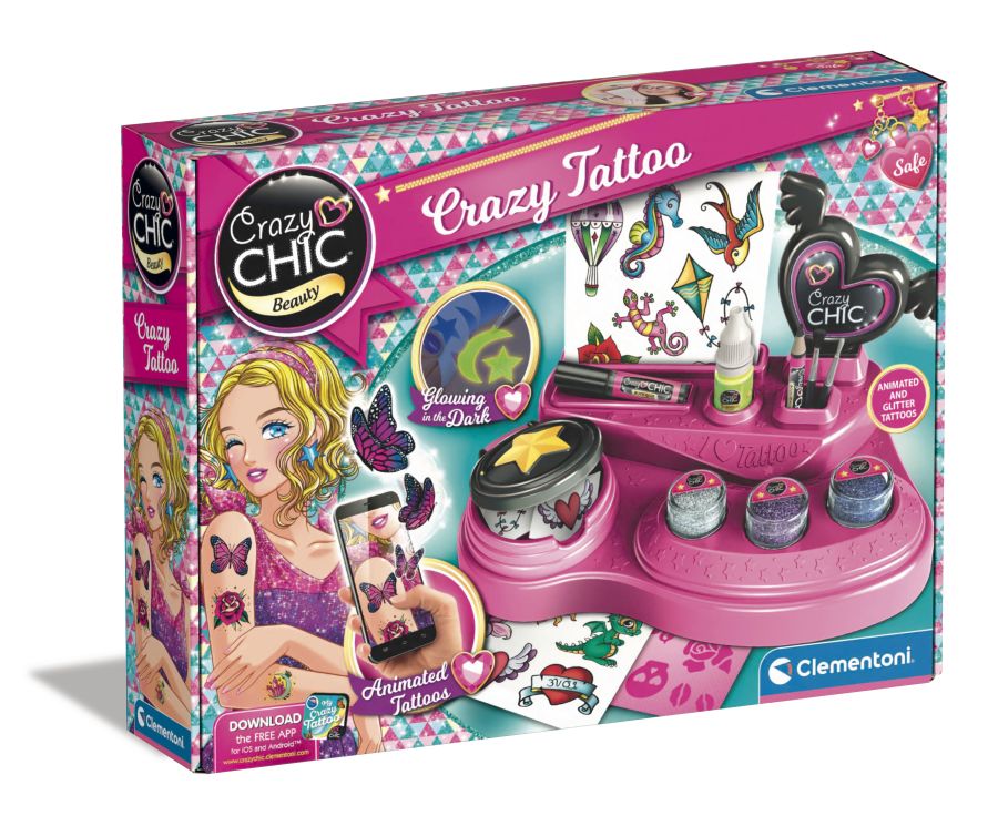 Kit creativo. Clementoni Crazy Tatoo Clementoni 18733 CRAZY CHIC 13BB0872874Per le fan dei tatuaggi è arrivato un kit super cool per realizzare tattoo trendy dai colori brillanti e dall'effetto glow in the dark. Grazie al pratico banchetto con tantissimi accessori sarà davvero facile dare spazio alla fantasia e alla creatività. Il prodotto contiene stencil adesivi, glitter colorati e colorante per il corpo effetto Glow in the Dark. In esclusiva per tutte le Crazy girls nel banchetto ci sono anche tanti fantastici tattoo con realtà aumentata. Con la Crazy Tattoo App, i tatuaggi diventano magicamente tridimensionali. Puoi fotografarli, personalizzarli e soprattutto condividerli con le amiche attraverso i canali social più trendy!
