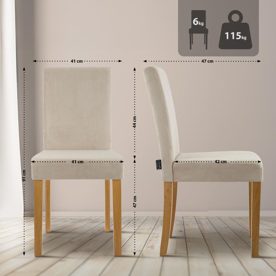 Set 2 Sedie da Pranzo Ina in Velluto a Coste