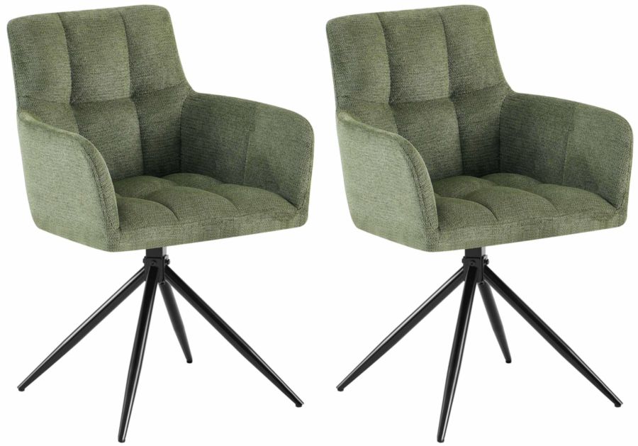 2er Set Sedia da pranzo Jonah tessuto verde