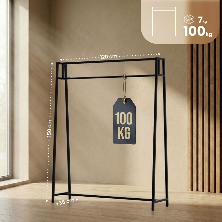 L appendiabiti Ingar unisce un design industriale minimalista e una funzionalita elevata per tenere l abbigliamento sempre in ordine. Realizzato con una solida struttura in ferro, questo modello e pensato per l uso quotidiano e anche per ambienti professionali. Con una portata fino a 100 kg, offre una base stabile anche per cappotti invernali pesanti e guardaroba voluminosi. La verniciatura a polvere di qualita dona al metallo una finitura resistente e facile da pulire in elegante nero opaco.