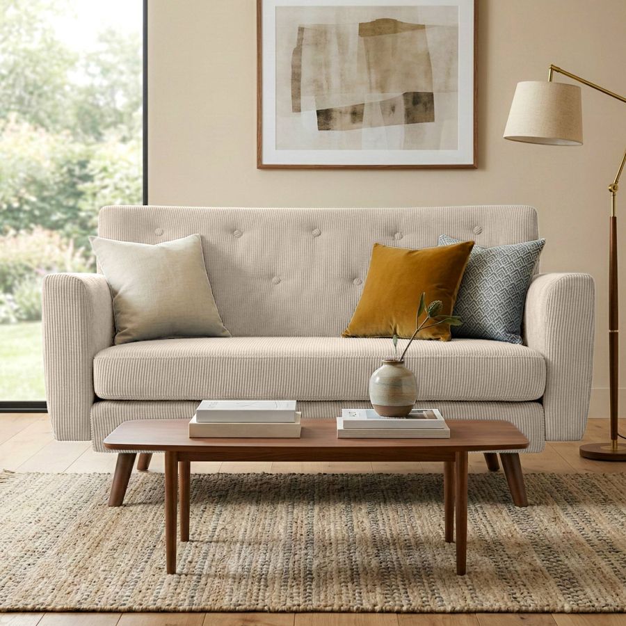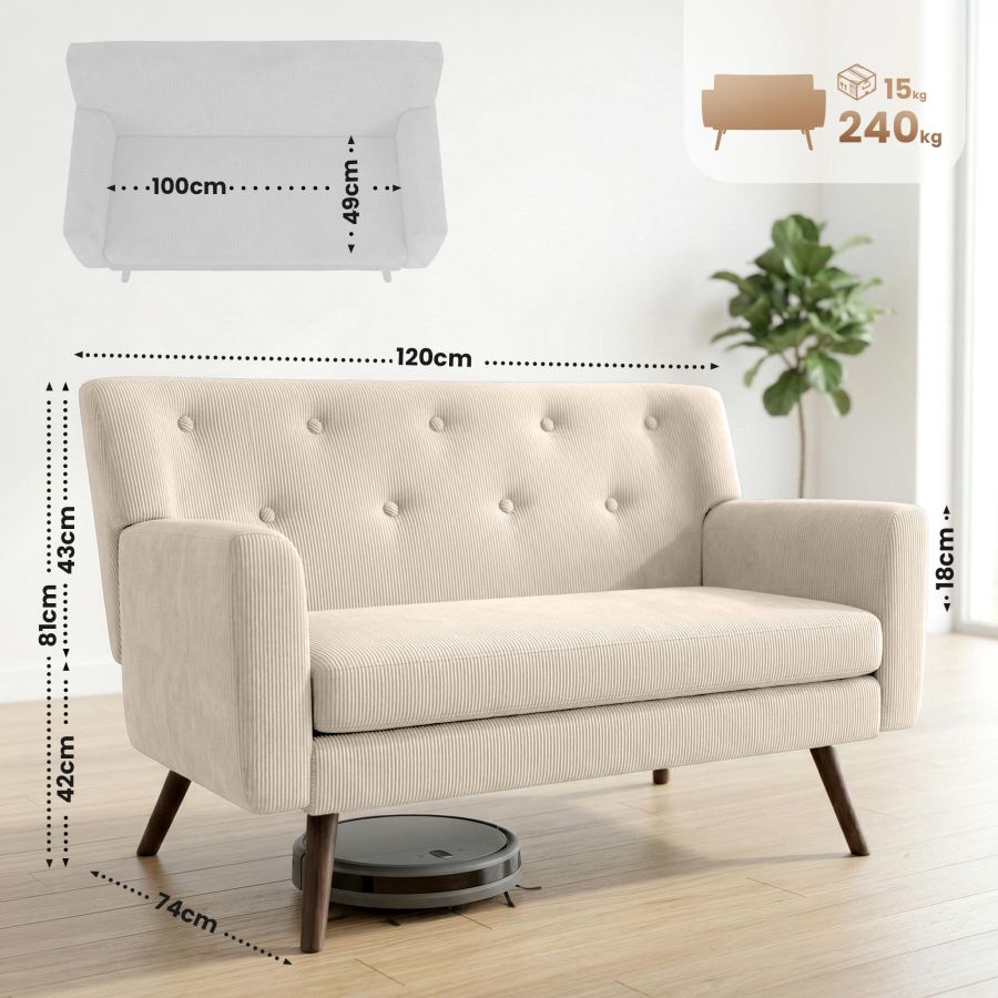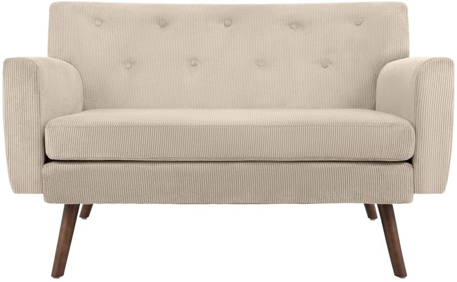 Questo divano 2 posti convince con un rivestimento resistente in velluto a coste, disponibile in colori di tendenza, e con solide gambe in legno di caucci. Lo schienale, insieme alla spessa imbottitura, aumenta sensibilmente il comfort di seduta (schiuma 25 kg/m3).