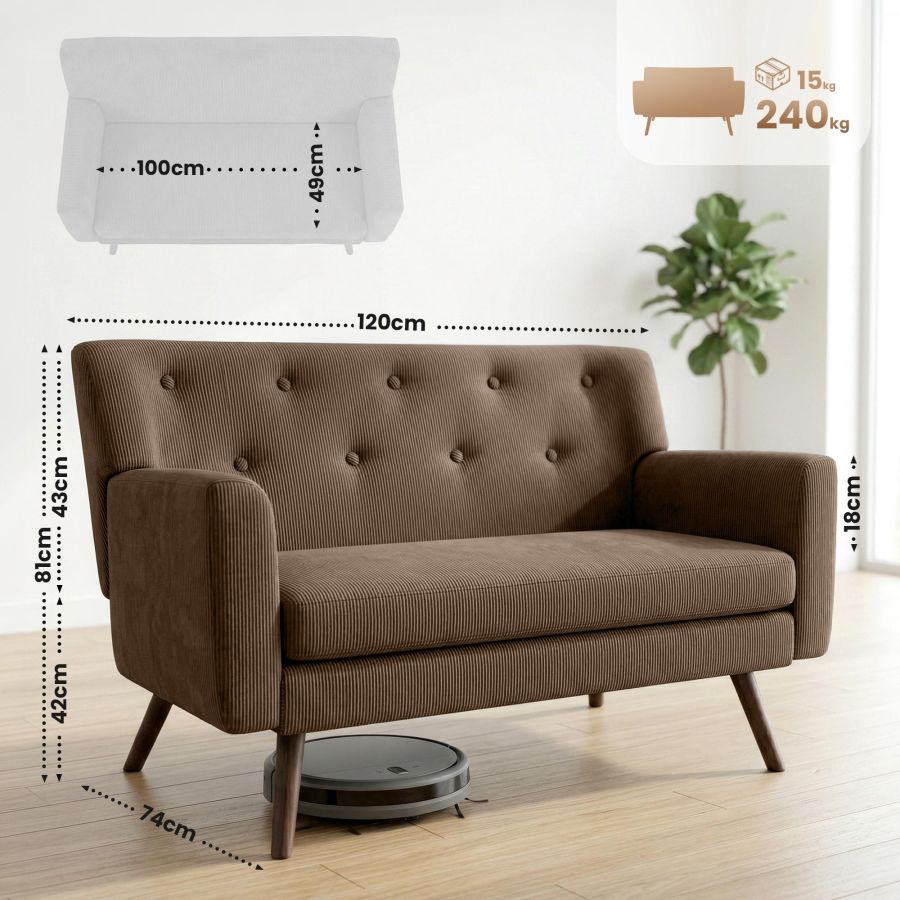 Questo divano 2 posti convince con un rivestimento resistente in velluto a coste, disponibile in colori di tendenza, e con solide gambe in legno di caucci. Lo schienale, insieme alla spessa imbottitura, aumenta sensibilmente il comfort di seduta (schiuma 25 kg/m3).