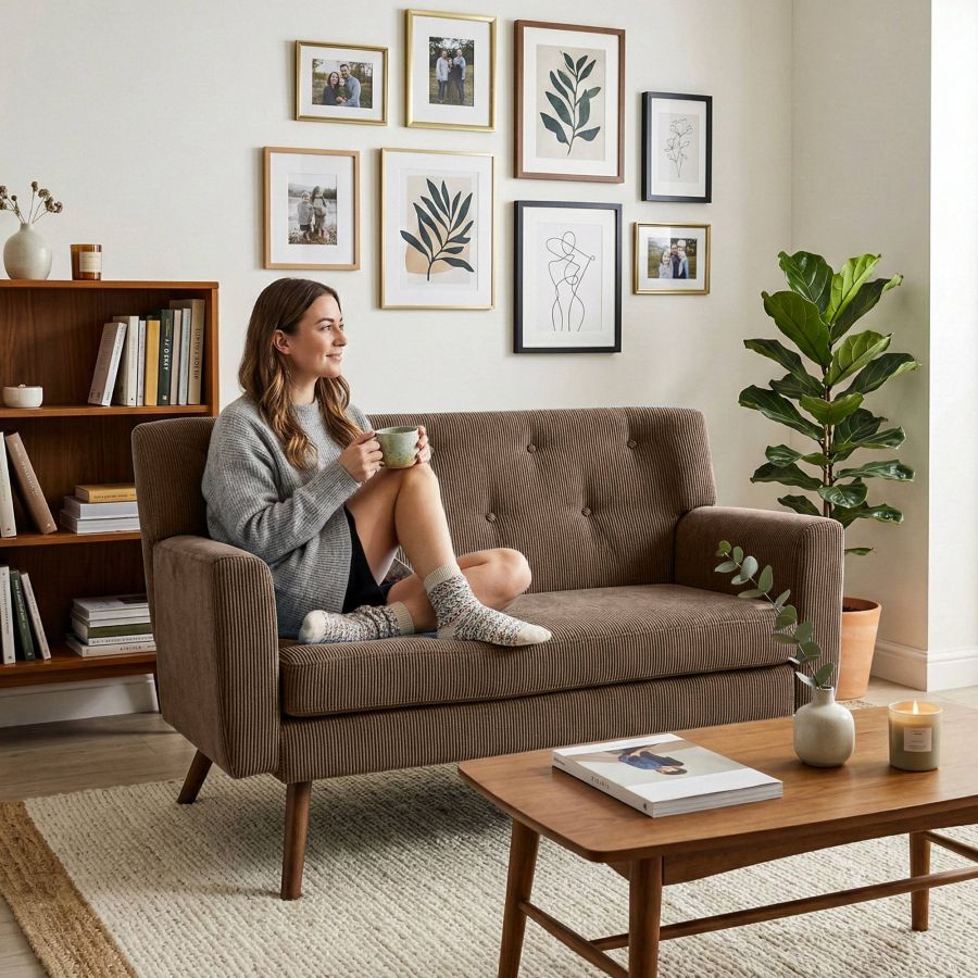 Il divano Kioni unisce eleganza e comfort con uno stile curato. Il design compatto e la seduta larga 100 cm offrono spazio per due persone, anche in ambienti piccoli.