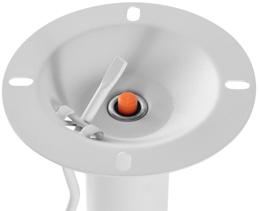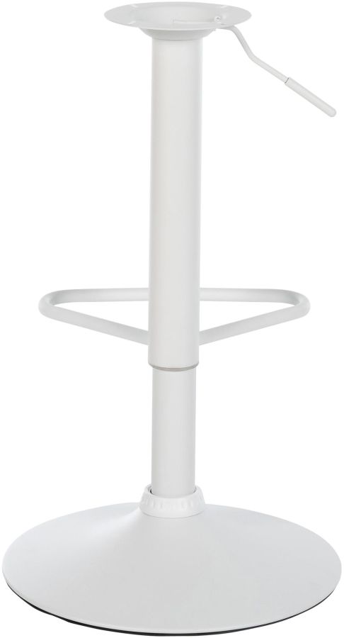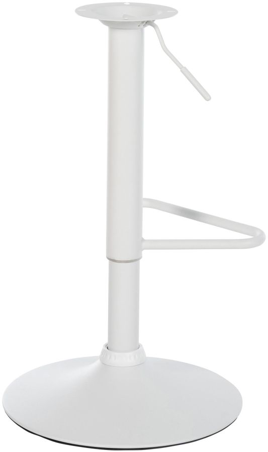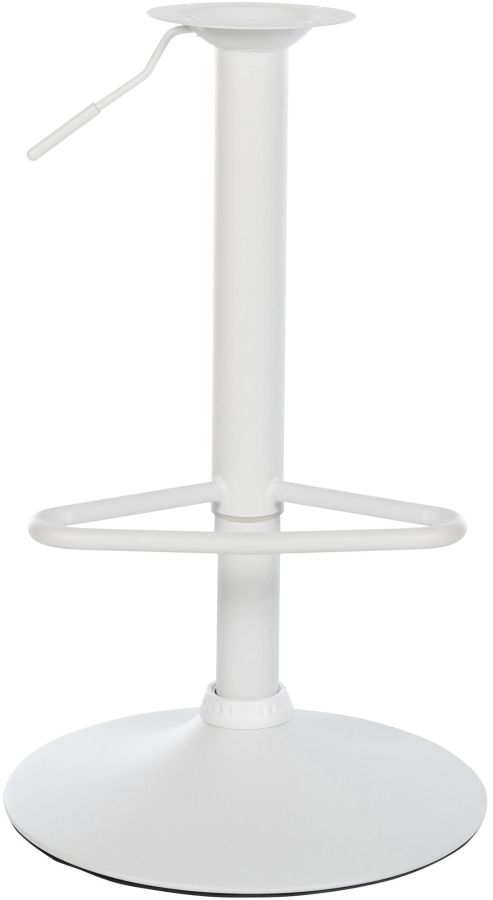 La colonna dello sgabello girevole, regolabile in altezza e dotata di un confortevole poggiapiedi. Sono disponibili diverse finiture: nero opaco, bianco opaco e cromato.
