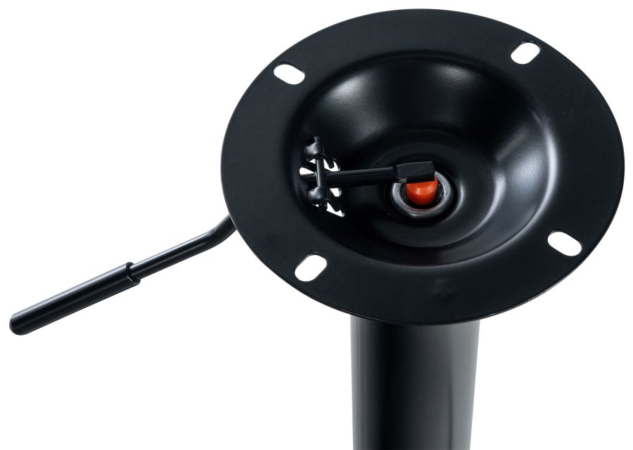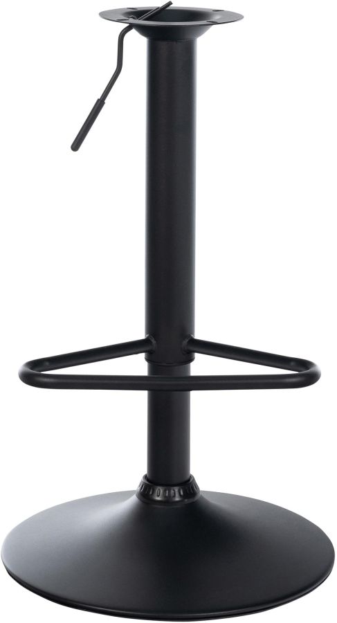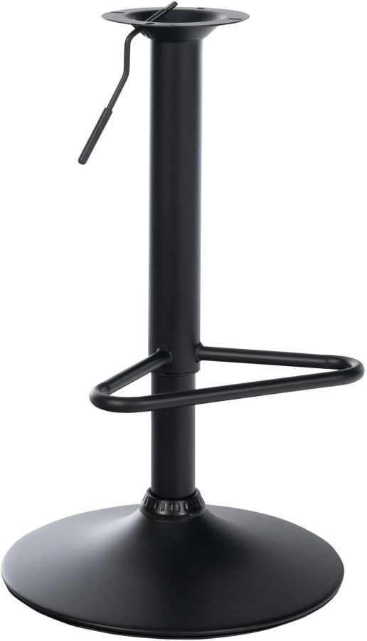 La colonna dello sgabello girevole, regolabile in altezza e dotata di un confortevole poggiapiedi. Sono disponibili diverse finiture: nero opaco, bianco opaco e cromato.