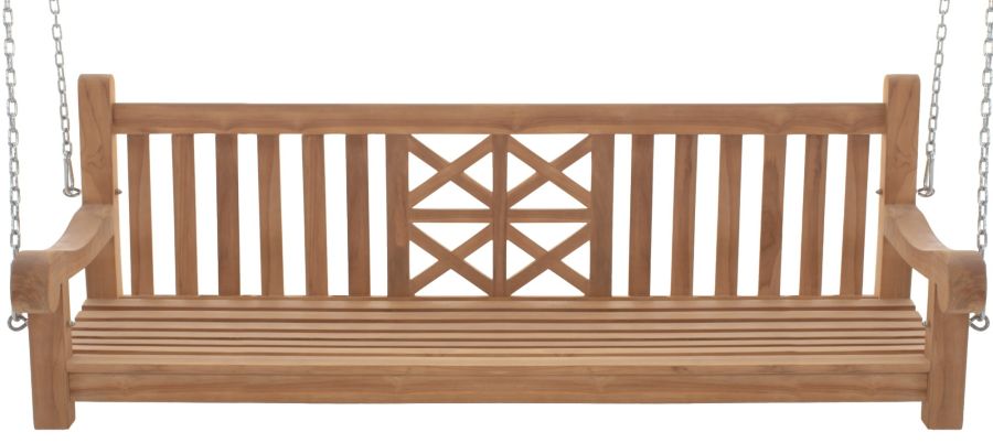 Il dondolo da giardino ha un aspetto chic con il suo esterno semplice e il colore marrone dorato del teak e pu essere abbinato a una variet di stili di arredamento diversi. La panchina ideale per rilassarsi. L'area di seduta e lo schienale sono leggermente curvati, rendendo la panchina confortevole anche senza imbottitura. La panca in teak dotata anche di braccioli laterali.