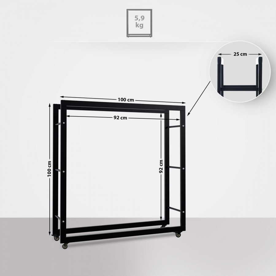 Porta legna CLP Portalegna Keri mit Rollen 25x100x100 nero CL325280