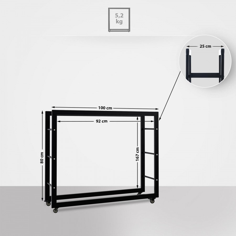 Il porta legna realizzato in metallo verniciato a polvere, in modo da essere protetto dalla formazione di ruggine. inoltre molto stabile grazie ai montanti trasversali collegati per riporre in modo affidabile la legna da ardere.